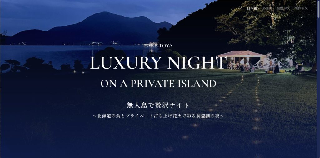 【洞爺湖観光協会×LUXETOYA×JTB】1か月間限りのプレミアム企画〜洞爺湖中島 | 無人島で贅沢ナイト〜