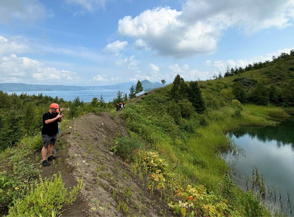 トレッキングの中で、通常のトレイルからは見えない火口を見つけ、噴火が作った美しい景観と爪痕のコントラストから何に気づき何を感じるか。